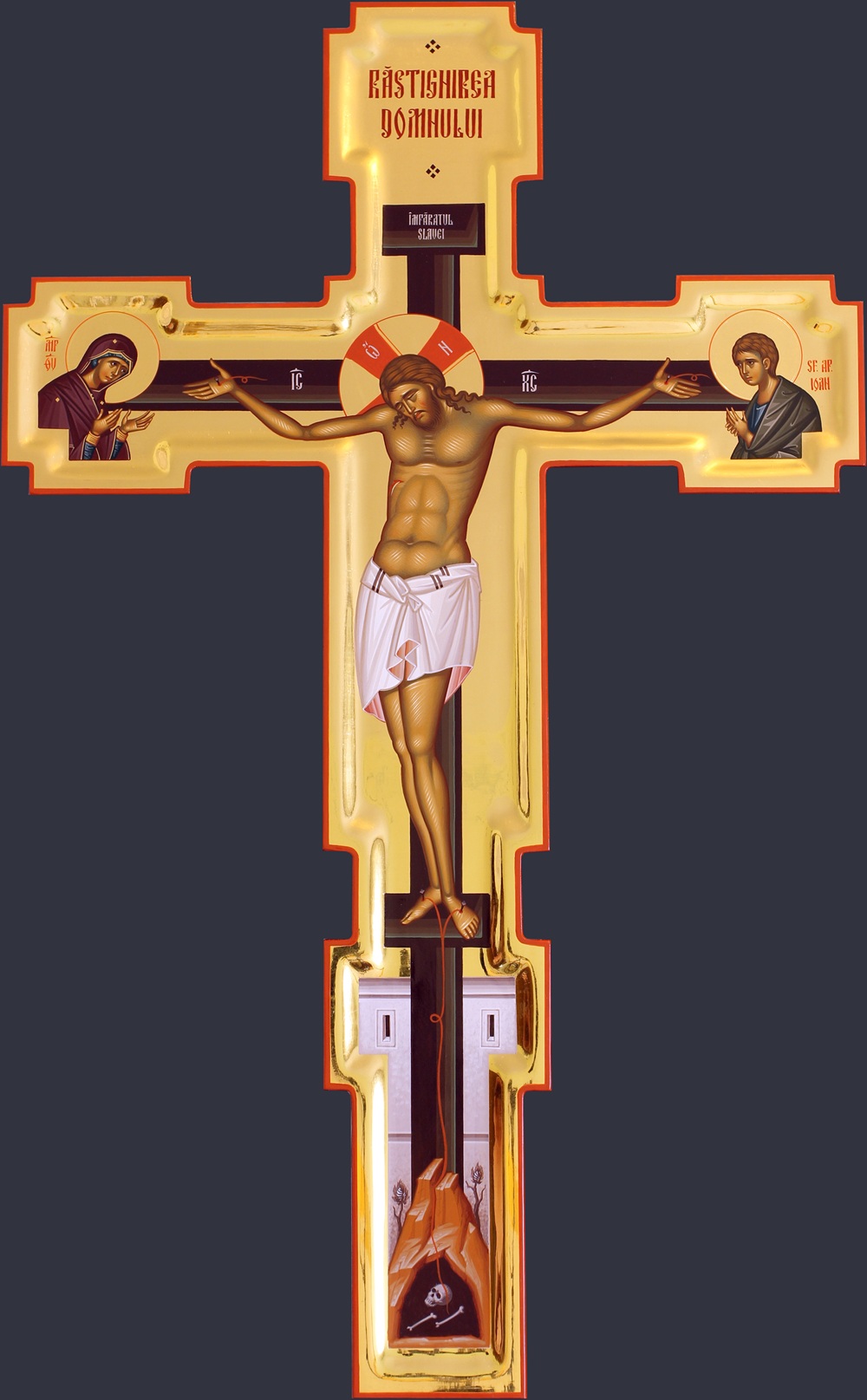 Cruce pentru Sfantul Altar - 90 X 117 cm, aurire cu bolus, 23,75k la aureole.